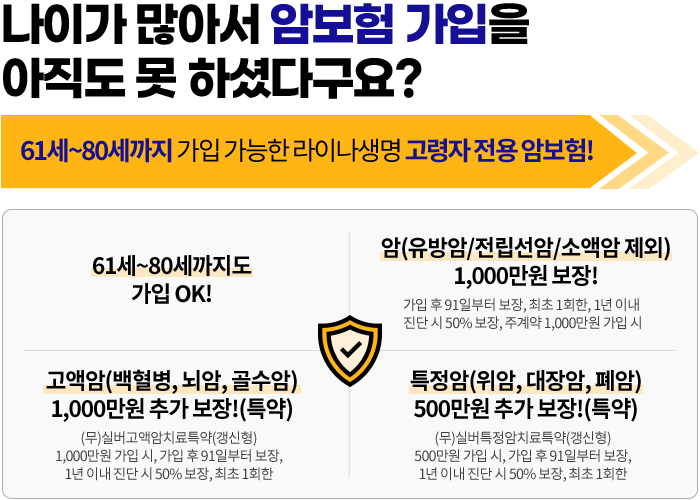 61세 ~ 80세 | 10년만기 (갱신을 통하여 최장 100세까지 보장) |